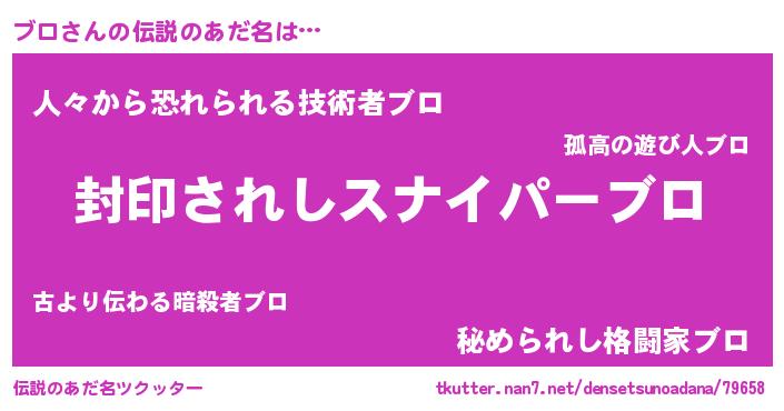 | 男性向けラノベタイトル風あだ名 | 『ブロに滅ぼされるだけの簡単なお仕事です』 |