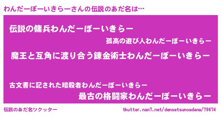 | 男性向けラノベタイトル風あだ名 | 『この素晴らしい世界にわんだーぼーいきらーを!』 |