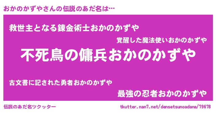 | 男性向けラノベタイトル風あだ名 | 『おかのかずやの憂鬱』 |