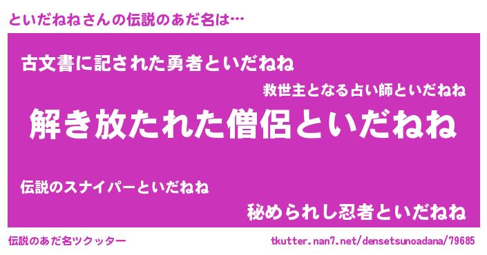 | ヘコむあだ名 | 『とい太郎』『といだねね(遠い目)』 |