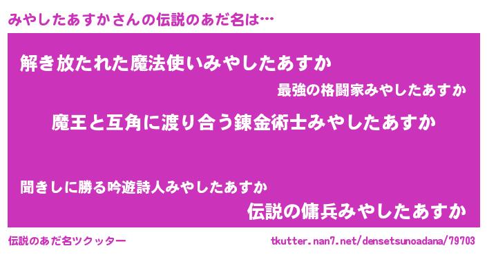 | 女子向けラノベタイトル風あだ名 | 『みやしたあすか恋絵巻』 |