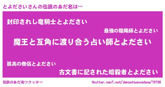 | ポケモン風あだ名 | 『トックウザ』『トーヨイ』 |