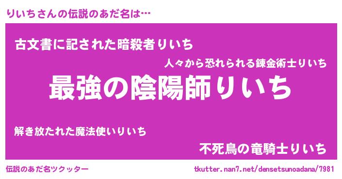 | 意味不明あだ名 | 『自称りいち』『もやし科りいち属』 |