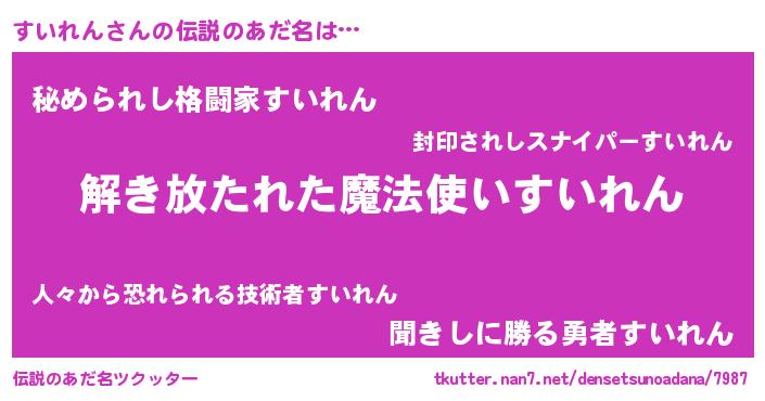 ヘコむあだ名 | 『すいを』『豆乳』『すいれん(笑)』 |