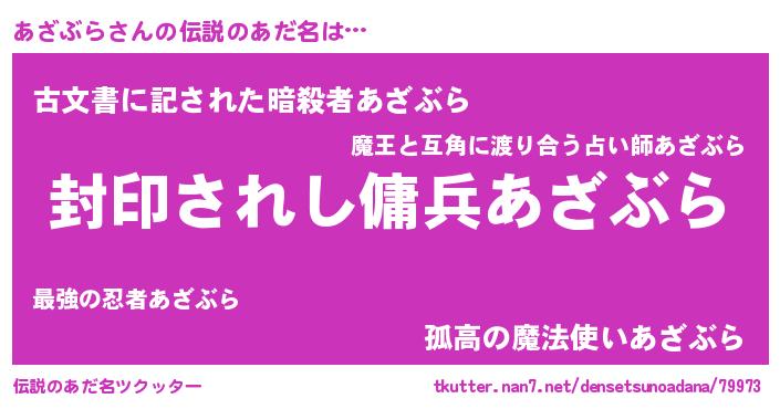 | ヒーロー風カッコイイあだ名 | 『仮面アザダー』『スーパーアザブラ』 |