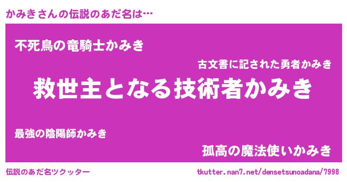 | ヒーロー風カッコイイあだ名 | 『天空の使者かみき』『スーパーカミキ』 |