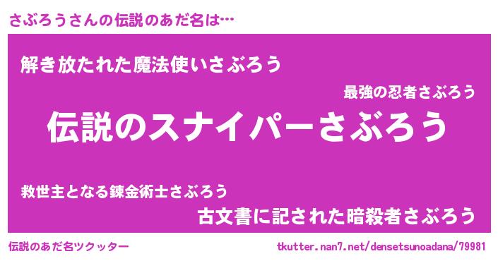 | 意味不明あだ名 | 『ペロリンさぶろう』『永久保存さぶろう』 |