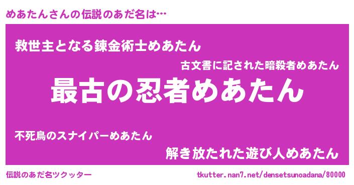 | ヒーロー風カッコイイあだ名 | 『ウルトラ戦士メアタン』『仮面メアダー』 |