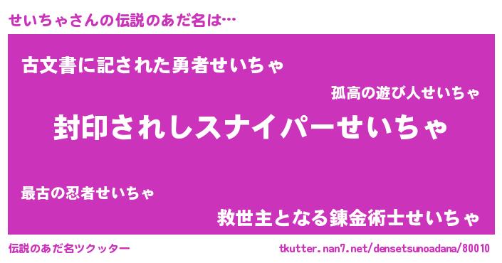 | ヒーロー風カッコイイあだ名 | 『スーパーセイチャ』『ネオセイチャ』 |
