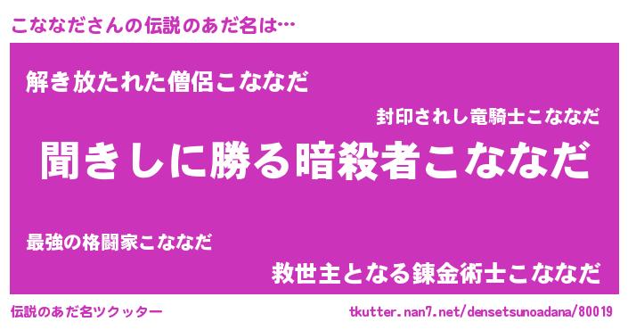 | 胡散臭い通販商品みたいなあだ名 | 『絶対に幸福をもたらす健康食品…その名も「こななだ」』 |