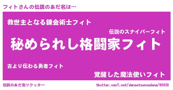 | ヒーロー風カッコイイあだ名 | 『超時空戦士フィト』『慈愛の使者フィト』 |