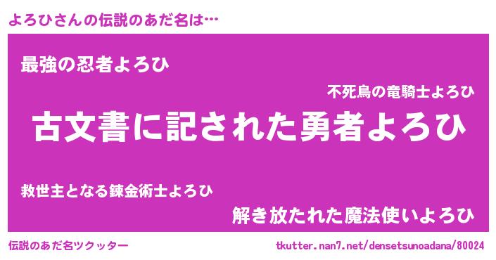 | ピコ太郎風あだ名 | 『ピコヨ郎』『ピヨ史郎』『ヨロ三郎』 |
