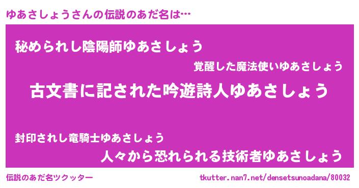 | 意味不明あだ名 | 『自称ゆあさしょう』 |