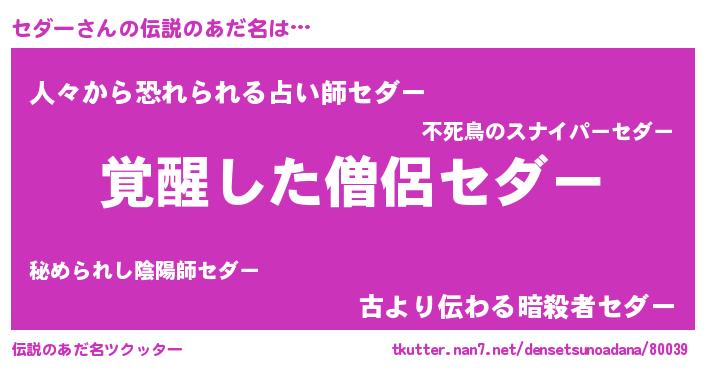 | 意味不明あだ名 | 『とにかく怪しいセダー』 |