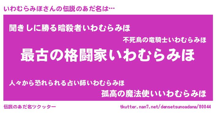 | ヒーロー風カッコイイあだ名 | 『最強戦士イワムラミホ』『仮面イワダー』 |