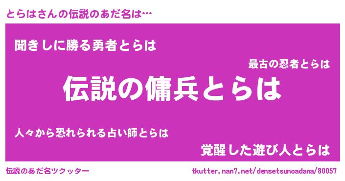 | 胡散臭い通販商品みたいなあだ名 | 『必ず成功する水晶球…その名も「とらは」』 |