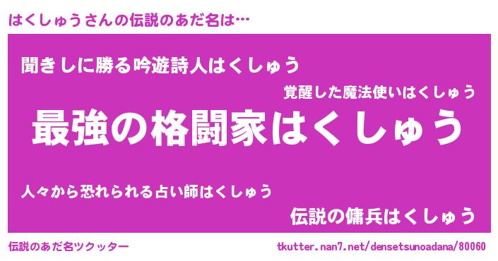 | ヒーロー風カッコイイあだ名 | 『究極戦士ハクシュウ』『仮面ハクダー』 |