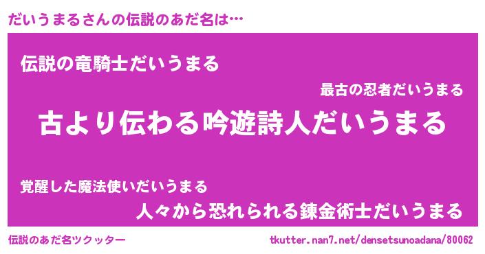 | ヘコむあだ名 | 『だいうまる(笑)』『だいにー』 |