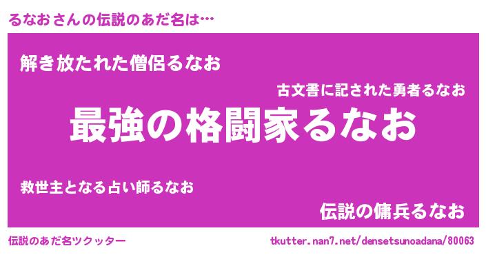 | ファンタジー風あだ名 | 『エターナルルナオー』『ヴァルルナーナ』 |