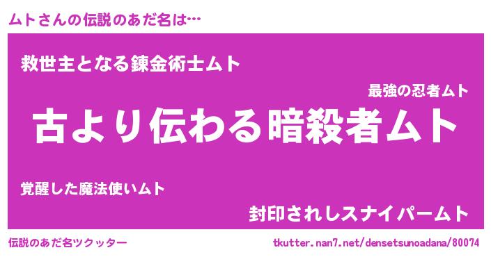 | 男性向けラノベタイトル風あだ名 | 『ムトという概念が存在しない退屈な世界 』 |