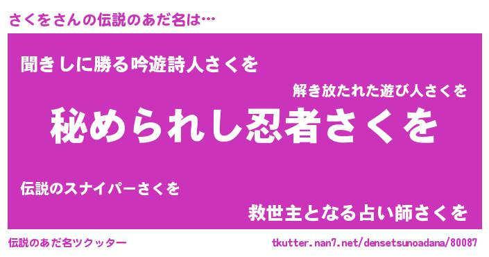 | ファンタジー風あだ名 | 『エターナルサクヲー』『サクディッシュ』 |