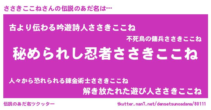 | ファンタジー風あだ名 | 『エターナルササキココネー』 |