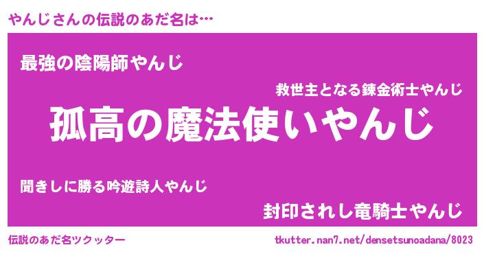 | 男性向けラノベタイトル風あだ名 | 『ダンジョンにやんじを求めるのは間違っているだろうか』 |