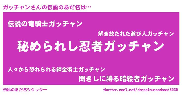 | ヒーロー風カッコイイあだ名 | 『ウルトラガッチャンマン』 |