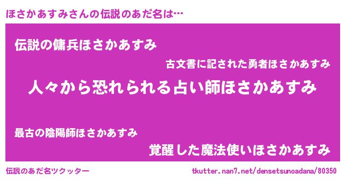 | ヒーロー風カッコイイあだ名 | 『友情の使者ほさかあすみ』 |