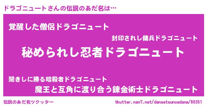 | 女子向けラノベタイトル風あだ名 | 『ドラゴニュートなんてお断りですっ。』 |