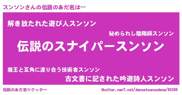 | 胡散臭い通販商品みたいなあだ名 | 『必ず成功する霊験あらたかなお札…その名も「スンソン」』 |