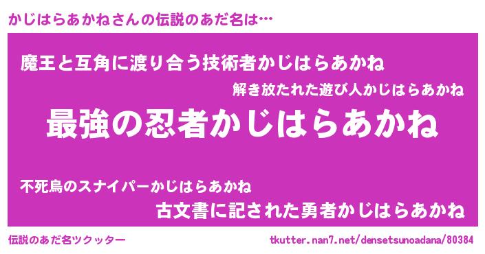 | 意味不明あだ名 | 『自称かじはらあかね』 |