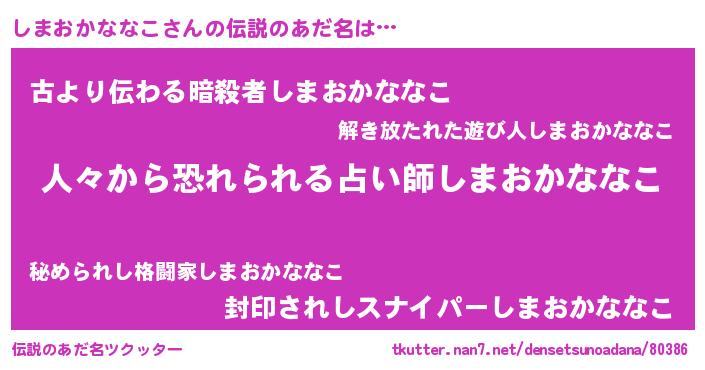 | ヘコむあだ名 | 『しまおかななこ(笑)』『しまもー』 |