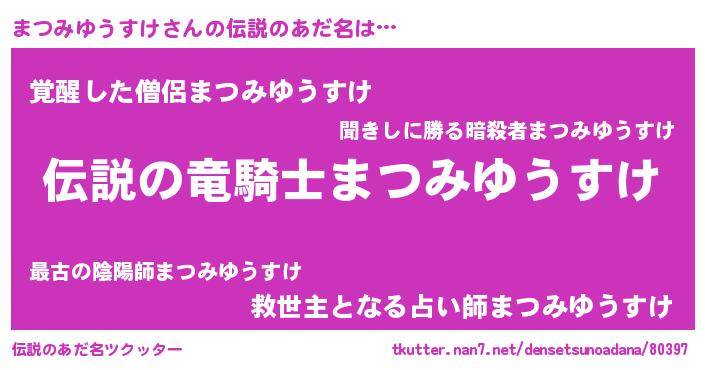 | 男性向けラノベタイトル風あだ名 | 『まつみゆうすけの憂鬱』 |