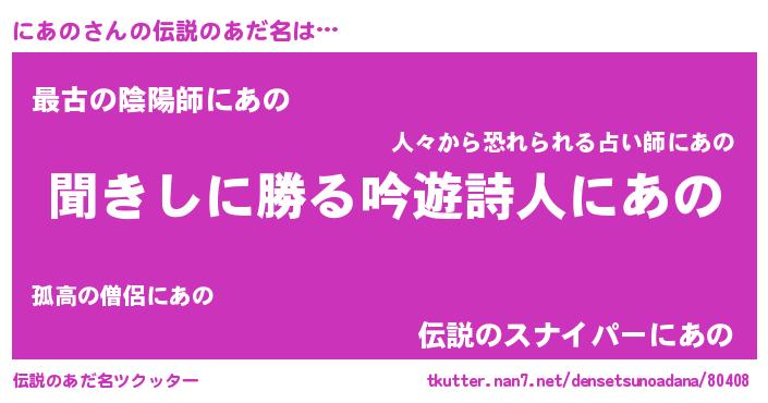 | 意味不明あだ名 | 『自称にあの』『永久保存にあの』 |