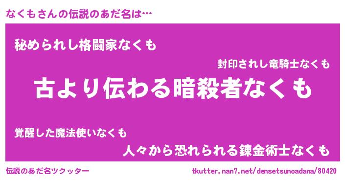 | 意味不明あだ名 | 『自称なくも』『永久保存なくも』 |