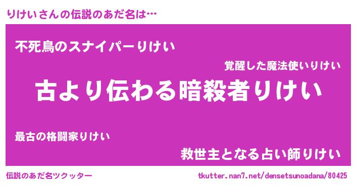 | 胡散臭い通販商品みたいなあだ名 | 『来世でも幸せになれる健康食品…その名も「りけい」』 |