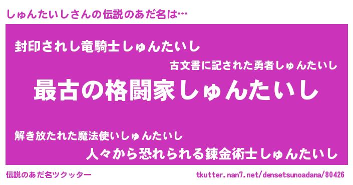 | ヒーロー風カッコイイあだ名 | 『ウルトラしゅんたいしマン』 |