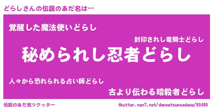| 意味不明あだ名 | 『住所不定無職どらし(41歳)』 |
