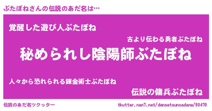 | ポケモン風あだ名 | 『ブタボダネ』『ヒブタボネ』 |