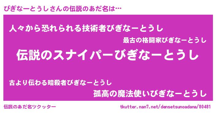 | 男性向けラノベタイトル風あだ名 | 『びぎなーとうしの憂鬱』 |