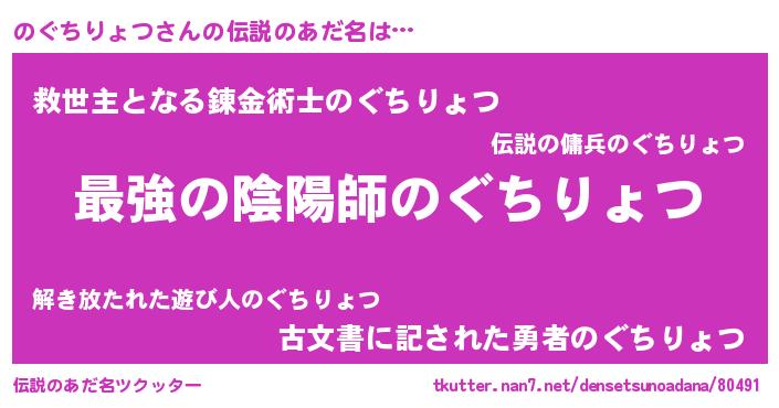 | ファンタジー風あだ名 | 『エターナルノグチリョツー』 |