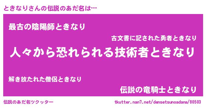 | ヒーロー風カッコイイあだ名 | 『正義の使者ときなり』『ネオトキナリ』 |
