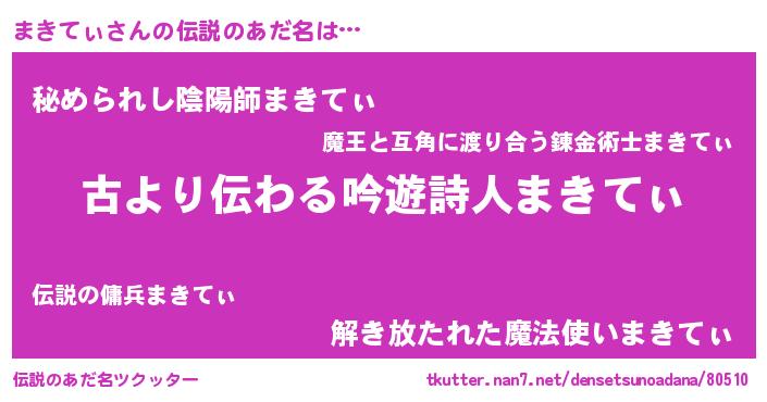 | 意味不明あだ名 | 『永久保存まきてぃ』『自称まきてぃ』 |
