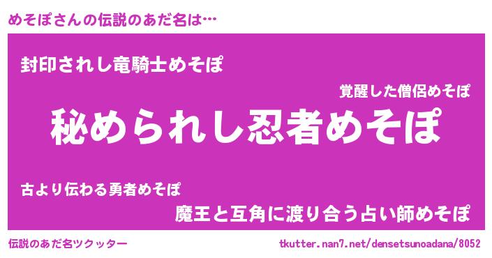 | 男性向けラノベタイトル風あだ名 | 『メソポスレイヤー』 |