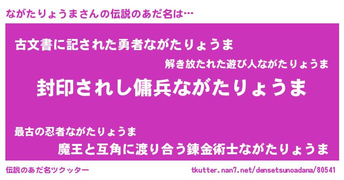 | 意味不明あだ名 | 『自称ながたりょうま』 |