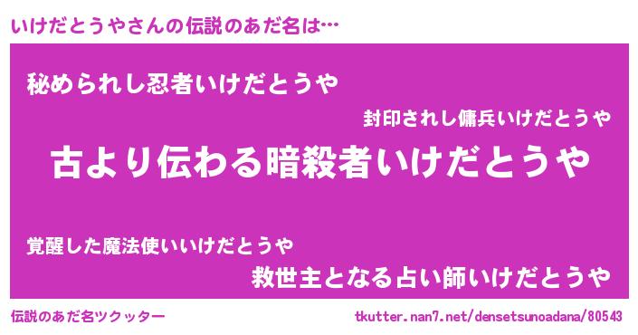 | 意味不明あだ名 | 『永久保存いけだとうや』 |