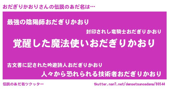 | 意味不明あだ名 | 『とにかく怪しいおだぎりかおり』 |