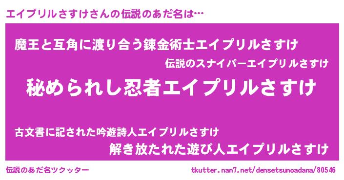 | ファンタジー風あだ名 | 『エターナルエイプリルサスケー』 |