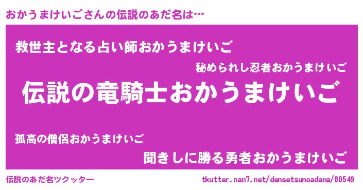 | 料理風あだ名 | 『おかうまけいごのカルパッチョ風』 |